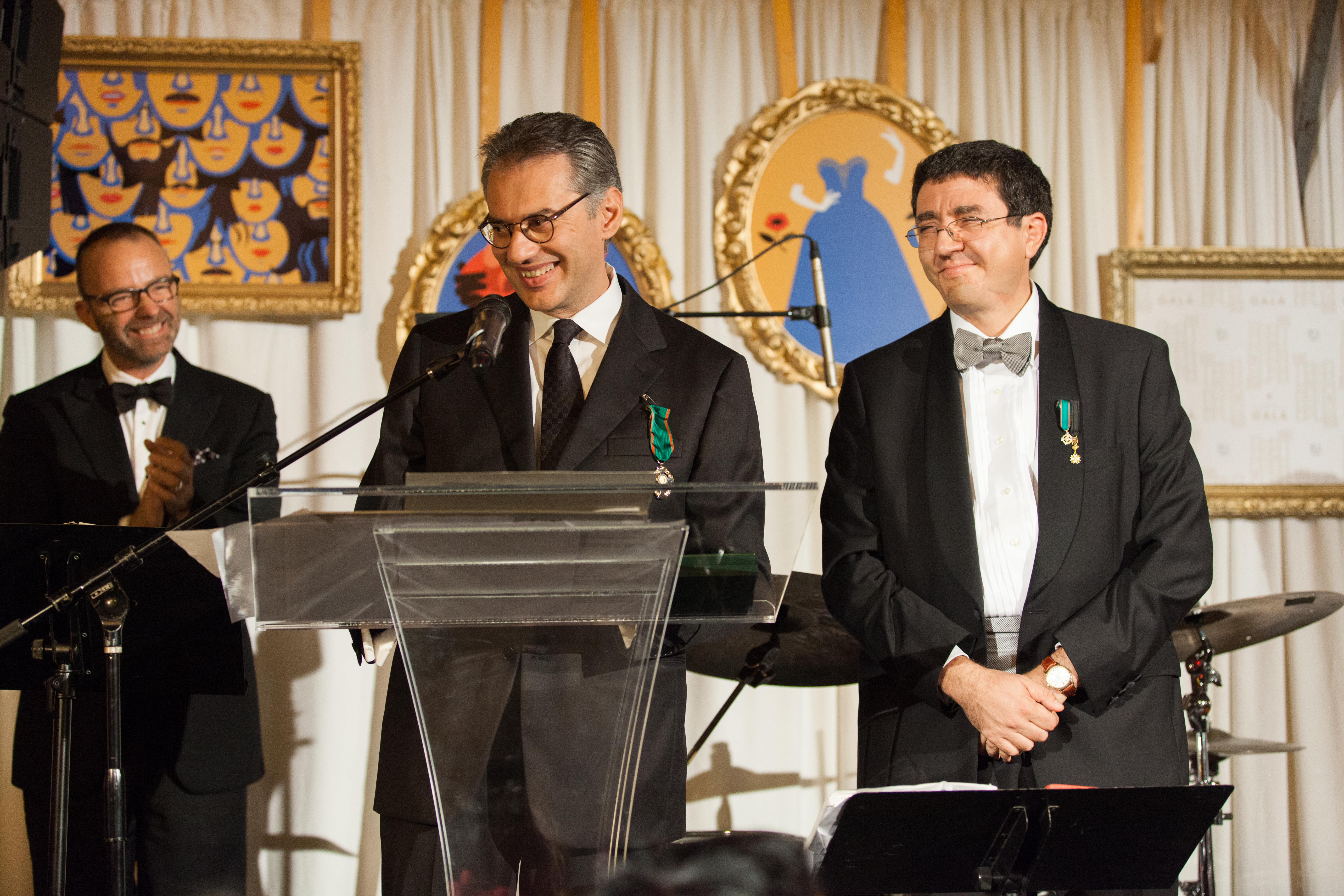 Jack Mulroney Music Director Corrado Rovaris (center) receives the Knight of the Order of Merit of the Italian Republic from the Honorable Andrea Canepari, Italian Consul General (right), while General Director David Devan looks on